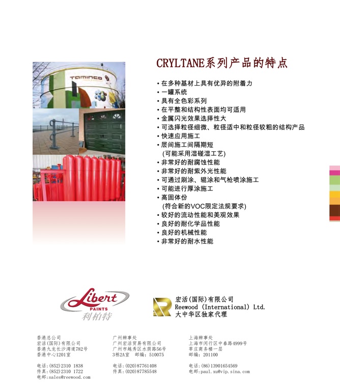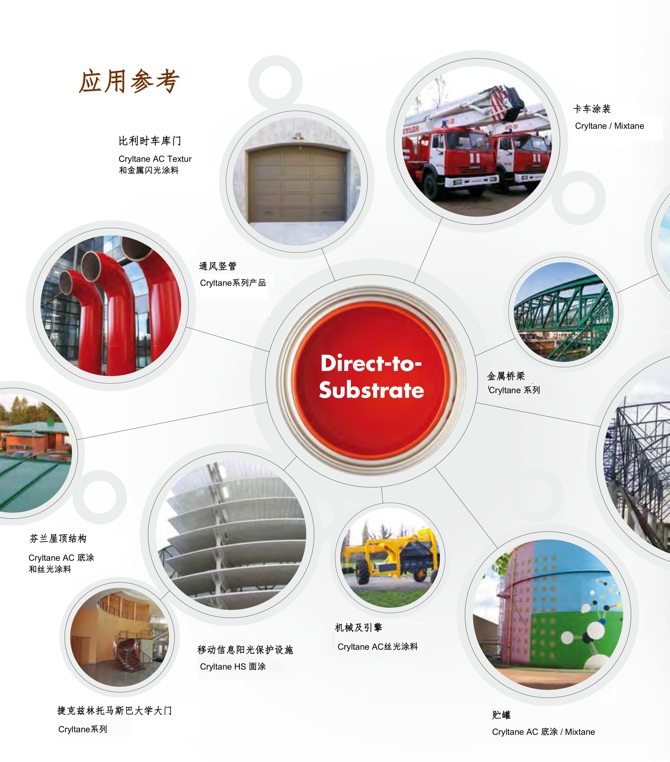 涂装人员目前只需要以一种产品涂装在不同的基材表面,仅以一种产品创建一个体系,而不需要制备包含底涂、中间涂层和面涂的多层体系。Libert 涂料公司的Cryltane产品系列具有多种高质量基材直接涂装涂料产品。